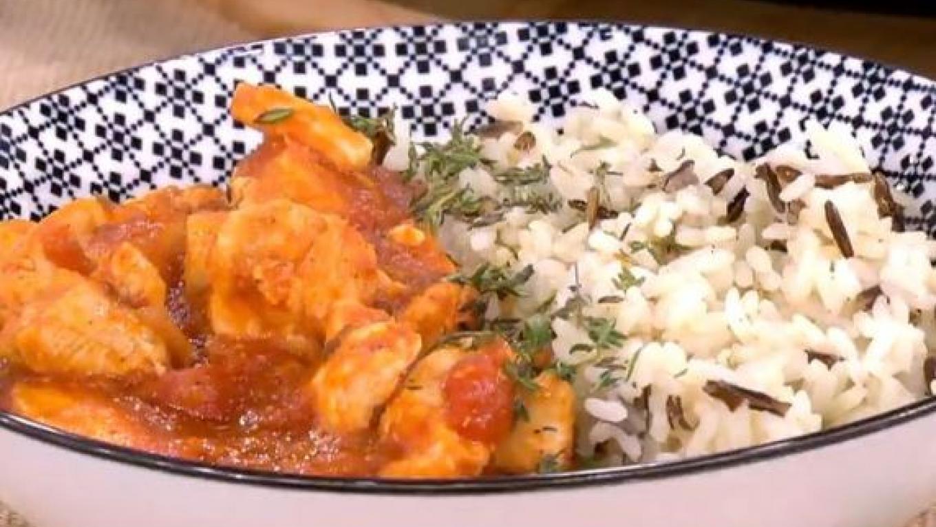 Η Κατερίνα Λένη μάς ετοιμάζει κοκκινιστό κοτόπουλο με άγριο ρύζι!