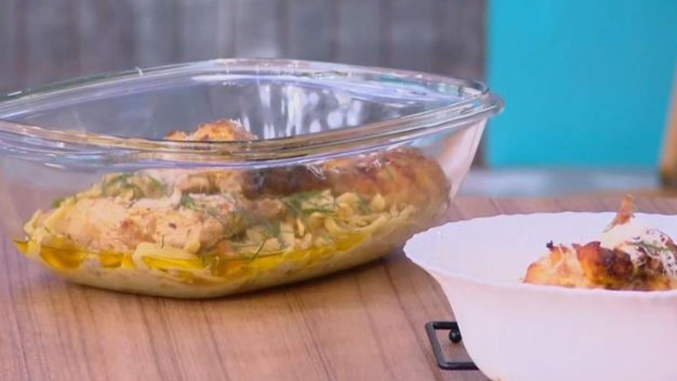 Κοτόπουλο με παπαρδέλες και λεμονάτη σάλτσα.