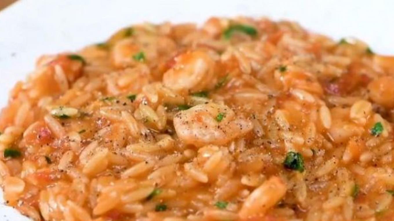 Θα χρειαστούμε: 2 κ.σ. ελαιόλαδο, 1/2 κρεμμύδι, 1 σκελίδα σκόρδο, 400 γρ. ντομάτα κονκασέ, Αλάτι και φρέσκο πιπέρι, 300 γρ. κριθαράκι, 600 ml ζωμός λαχανικών, Ξύσμα λεμονιού, Χυμός λεμονιού, 200 γρ. γαρίδες, Μαϊντανός.