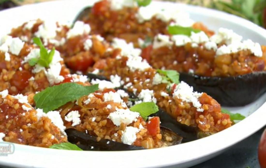 Μελιτζάνες εποχής γεμιστές με πλιγούρι από τον Σταύρο Βαρθαλίτη
