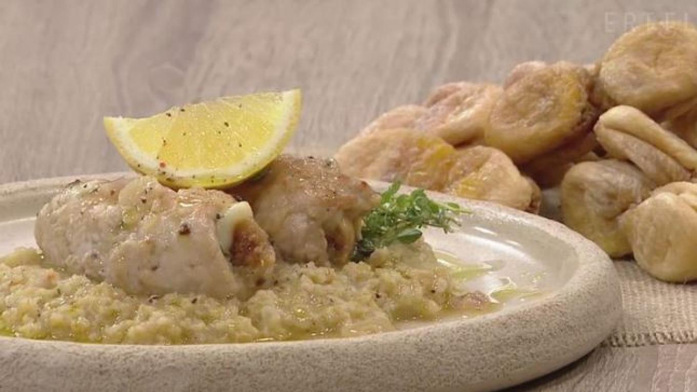 Πολπετίνια χοιρινού με ξηρά σύκα Κύμης και κασέρι