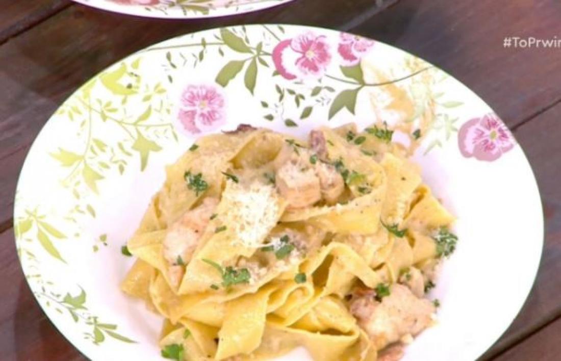 Ο Πέτρος Συρίγος ετοιμάζει παπαρδέλες al fredo με κοτόπουλο και μπέικον!