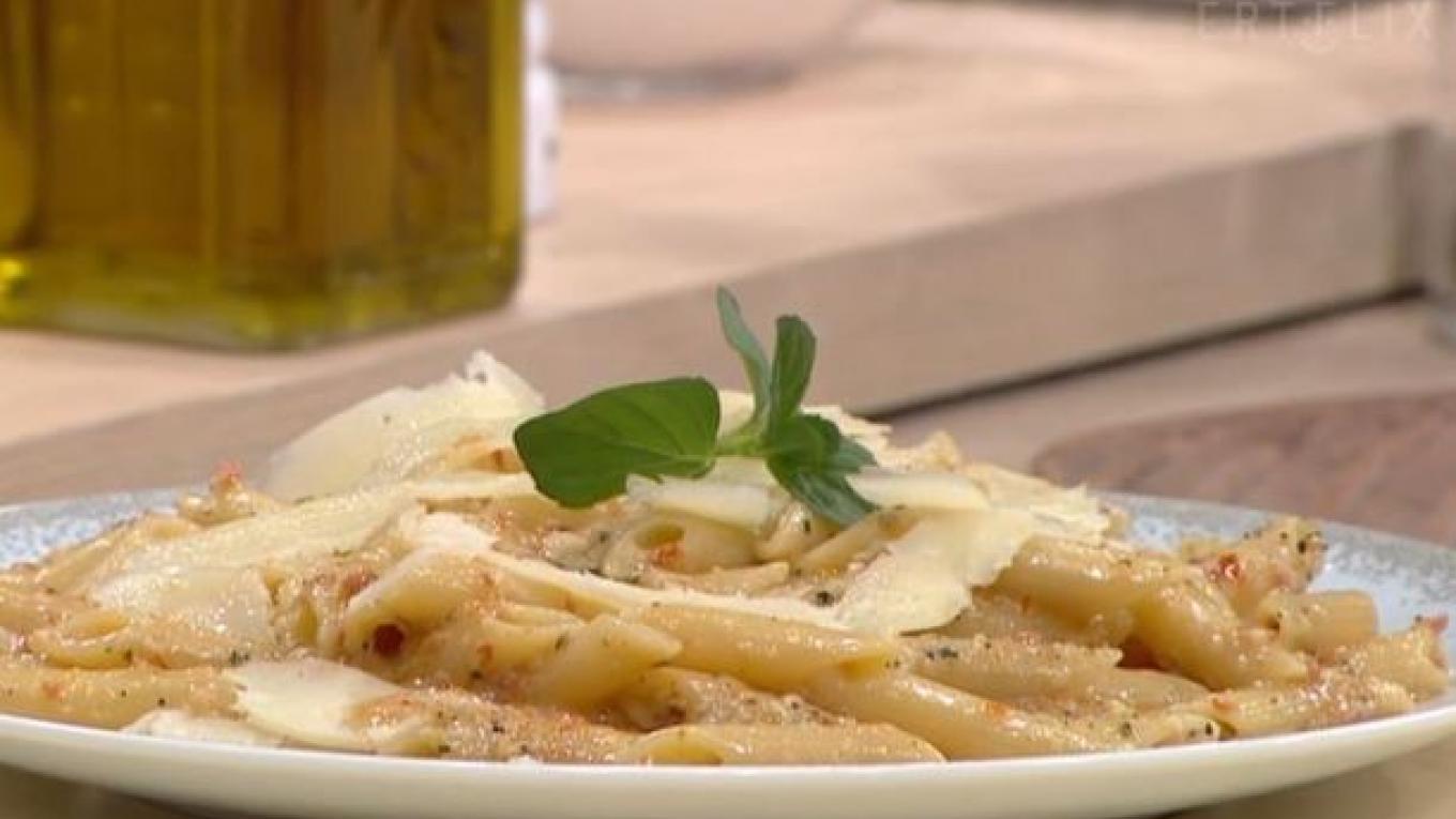 Δείτε βήμα-βήμα πώς μπορείτε να φτιάξετε πένες με πέστο από γραβιέρα Νάξου και λιαστές ντομάτες.