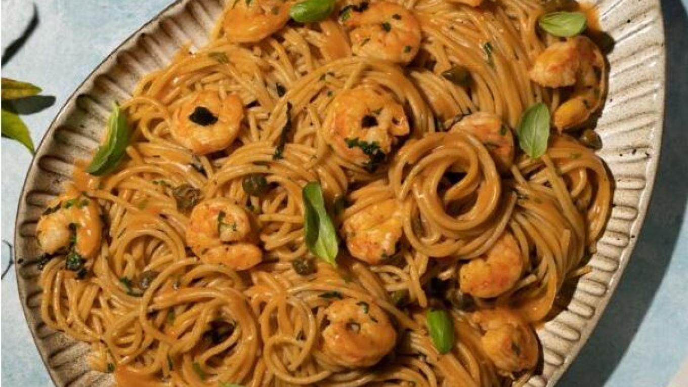 Όλα τα μυστικά για την πιο νόστιμη, αρωματική γαριδομακαρονάδα, με ζουμερές καλοκαιρινές ντομάτες και σπιρτόζικη κυκλαδίτικη κάππαρη από τη Νένα Ισμυρνόγλου.