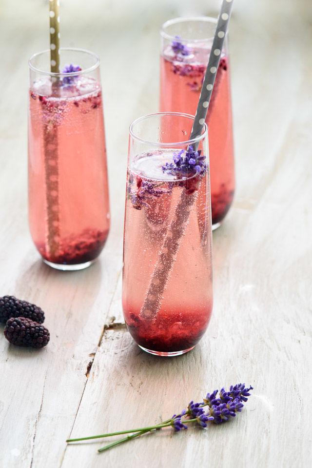 Λιώστε κατεψυγμένα βατόμουρα (υπάρχουν παντού πλέον) και προσθέστε ελάχιστα στη σαμπάνια που περιέχει μια σταλιά βότκα (ή και περισσότερο αν θέλετε). 'Ενα κλωνάρι λεβάντας και εορταστικά καλαμάκια θα κάνουν τη διαφορά.