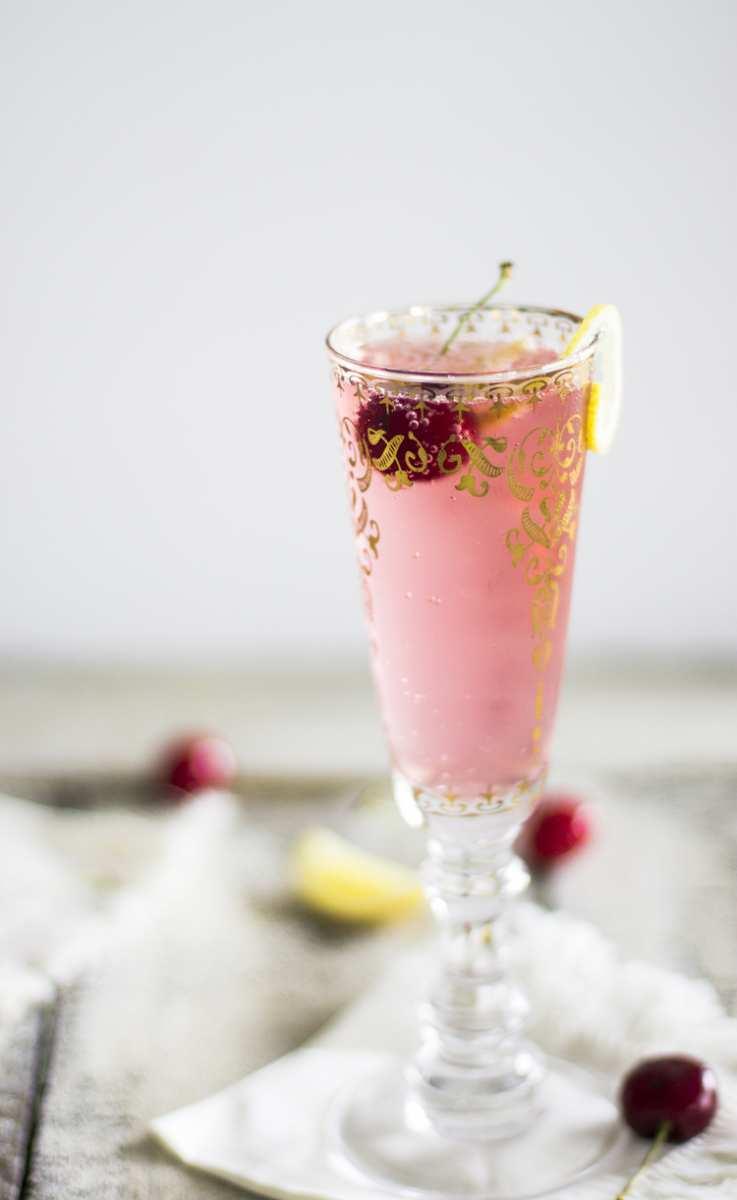Σιρόπι κεράσι, λίγο τζιν και μια σταγόνα χυμό λεμονιού. Μην ξεχάσετε το prosecco!