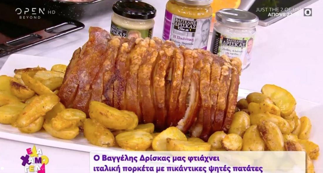 Ο Βαγγέλης Δρίσκας μαγειρεύει ιταλική πορκέτα με πικάντικες ψητές πατάτες.