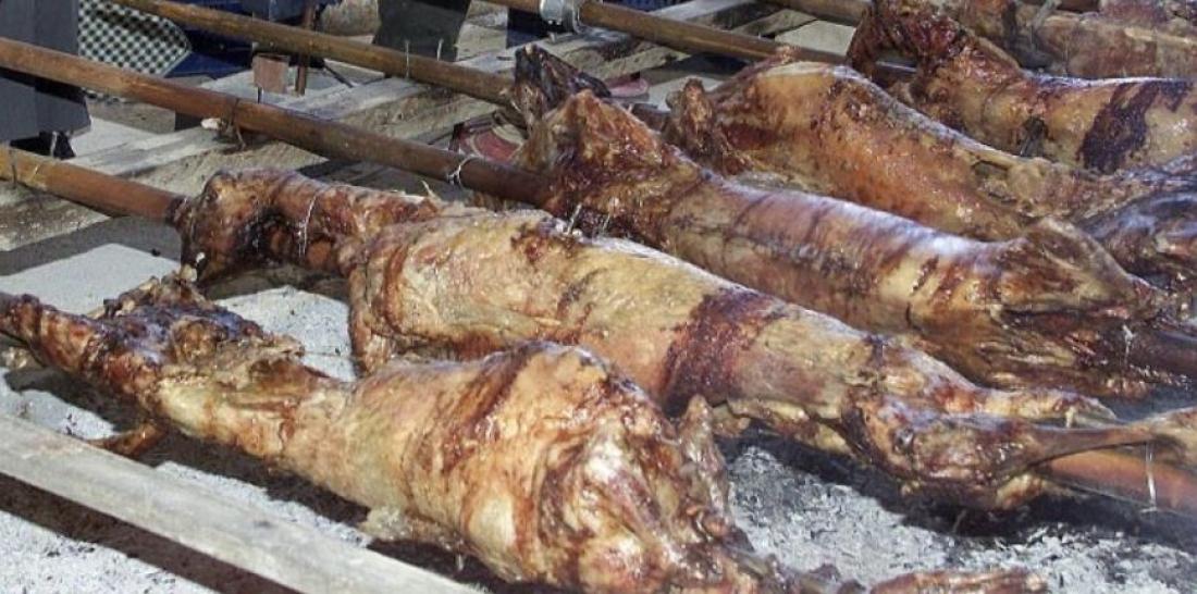 - Τρυπάμε με την πιρούνα της σούβλας στα μπούτια του αρνιού για να μείνει σταθερό πάνω στη σούβλα.