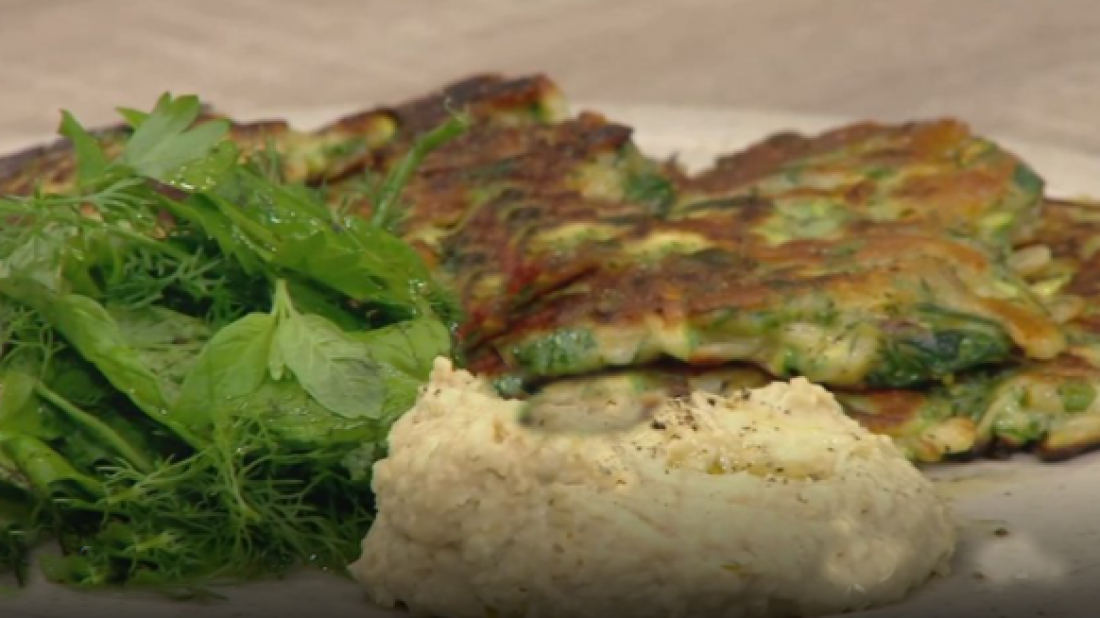 Τηγανίτες με χαλούμι, κολοκυθάκι και χούμους από τον σεφ Ανδρέα Λαγό (ΒΙΝΤΕΟ)