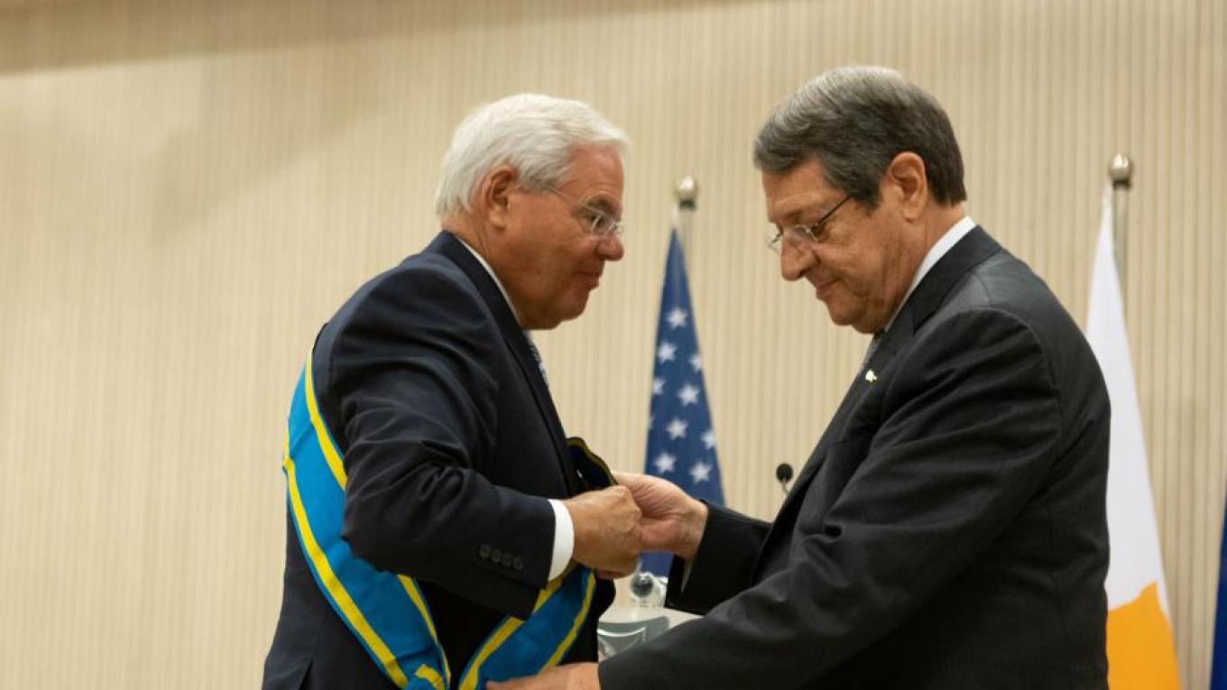 Ευχαριστίες και ευγνωμοσύνη προς τον Αμερικανό γερουσιαστή Ρόμπερτ Μενέντεζ για τις διαχρονικές θέσεις αρχής που διατηρεί έναντι του Κυπριακού, εξέφρασε σήμερα ο Πρόεδρος της Κυπριακής Δημοκρατίας Νίκος Αναστασιάδης.