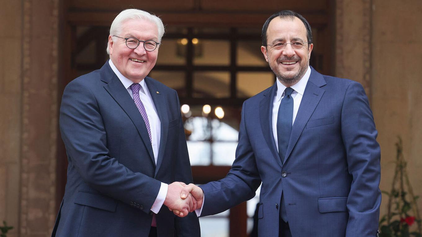 Ο Φρανκ-Βάλτερ Σταϊνμάιερ έγινε σήμερα ο πρώτος γερμανός πρόεδρος που επισκέπτεται την Κύπρο, με αφορμή τα 20 χρόνια από την ένταξη της Κυπριακής Δημοκρατίας στην Ευρωπαϊκή Ένωση και προκειμένου να τιμήσει την σχέση φιλίας και συνεργασίας των δύο χωρών.