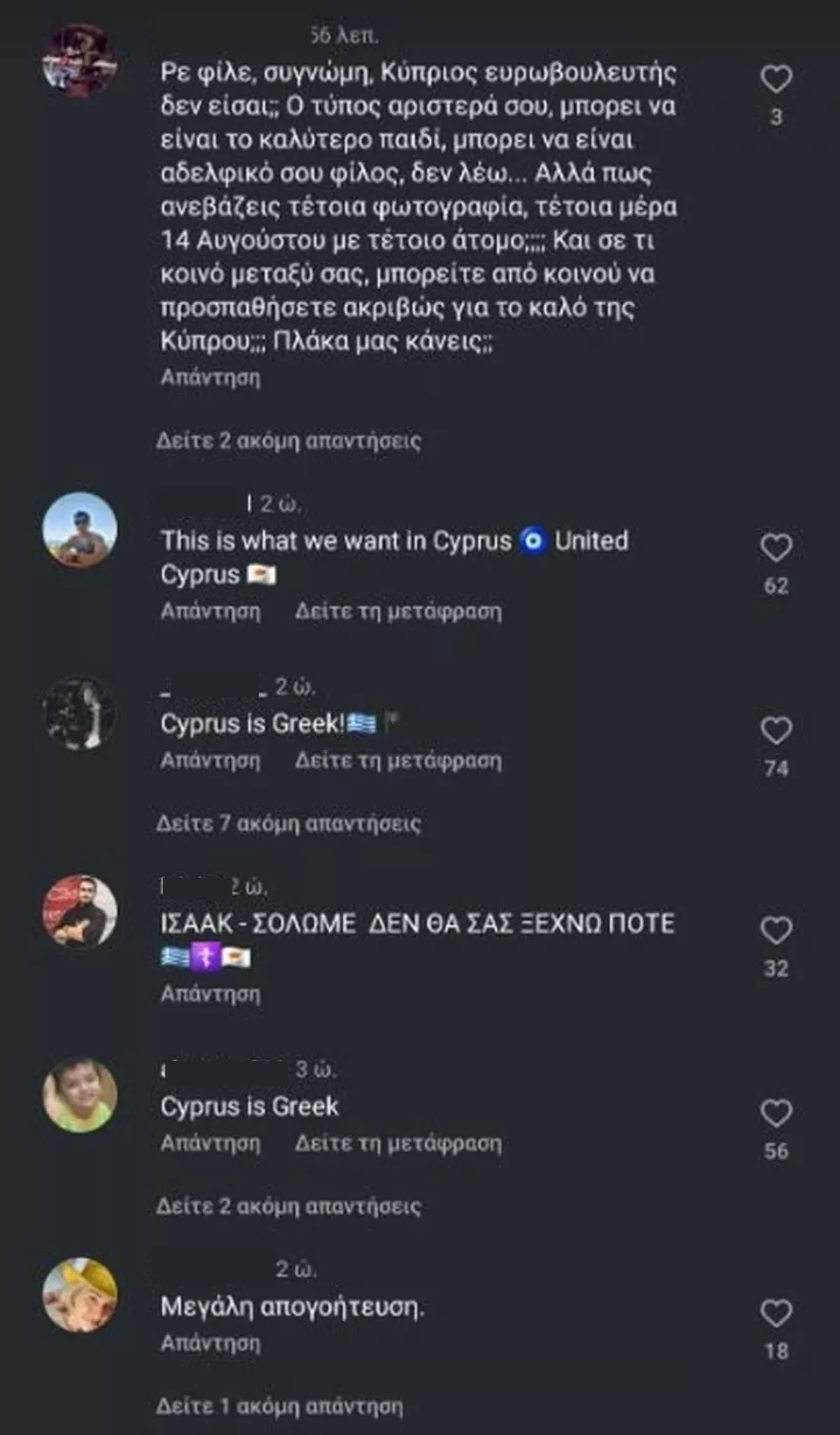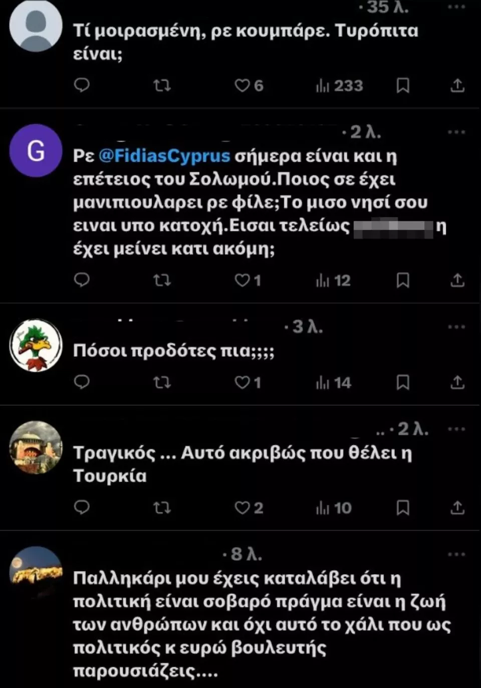 Το βίντεο προκάλεσε πολλές αντιδράσεις με τα σχόλια να «πέφτουν βροχή» στα social media. Πολλοί χαρακτήρισαν τον Φειδία «προδότη» και ότι αυτό που κάνει είναι «ακριβώς αυτό που θέλει η Τουρκία». Ωστόσο υπάρχουν και κάποιοι χρήστες του τον επαίνεσαν.