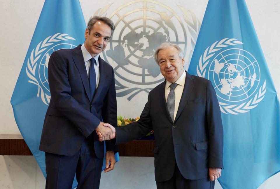 Συνάντηση με τον Γενικό Γραμματέα του ΟΗΕ Αντόνιο Γκουτέρες είχε στη Νέα Υόρκη ο πρωθυπουργός, Κυριάκος Μητσοτάκης. Κυβερνητικές πηγές αναφέρουν ότι κατά τη διάρκεια της συνάντησης ο Πρωθυπουργός εξέφρασε την εκτίμησή του για τις προσπάθειες του Γενικού Γραμματέα και της προσωπικής του απεσταλμένης του Μαρία Άνχελα Ολγκίν για την επανεκκίνηση των συνομιλιών για το Κυπριακό.
