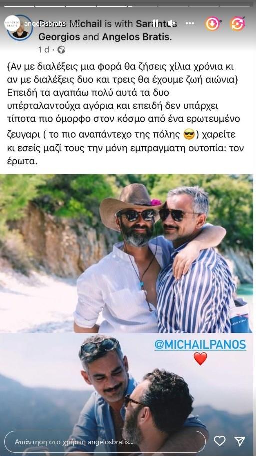 Μάλιστα, ο Άγγελος Μπράτης έκανε repost στην ανάρτηση του φίλου του και έβαλε μια καρδιά.