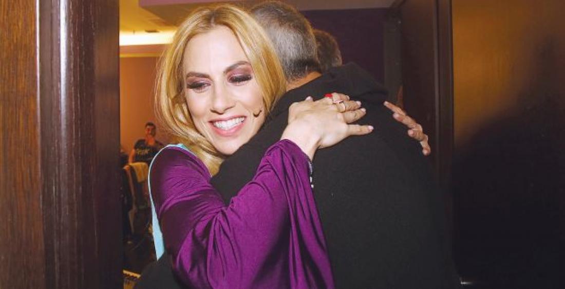Οβρέθηκε στα καμαρίνια του Gazi Theater για να συγχαρεί την για την ερμηνεία της στο μιούζικαλ «Μαριχουάνα Stop!» και οι αγκαλιές τους ήταν μάρτυρας ότι οι δυο τους, πολλά χρόνια μετά το διαζύγιό τους, διατηρούν άριστες σχέσεις - όχι μόνο για το χατίρι των δύο γιων τους, Διονύση και Φίλιππου.