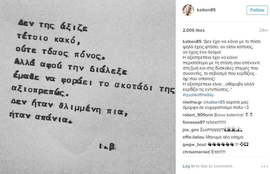 Μια φωτογραφία με λίγα αινιγματικά λόγια ανέβασε σήμερα στον προσωπικό της λογαριασμό στο Instagram η Κατερίνα Καινούργιου.