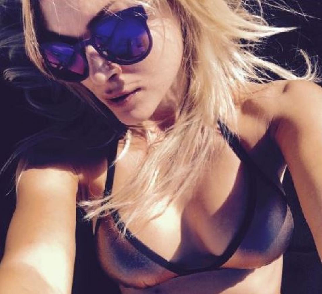 Δείτε την φωτό που ανέβασε στο Instagram με μεταλλιζέ μαγιό σε μοβ χρώμα.