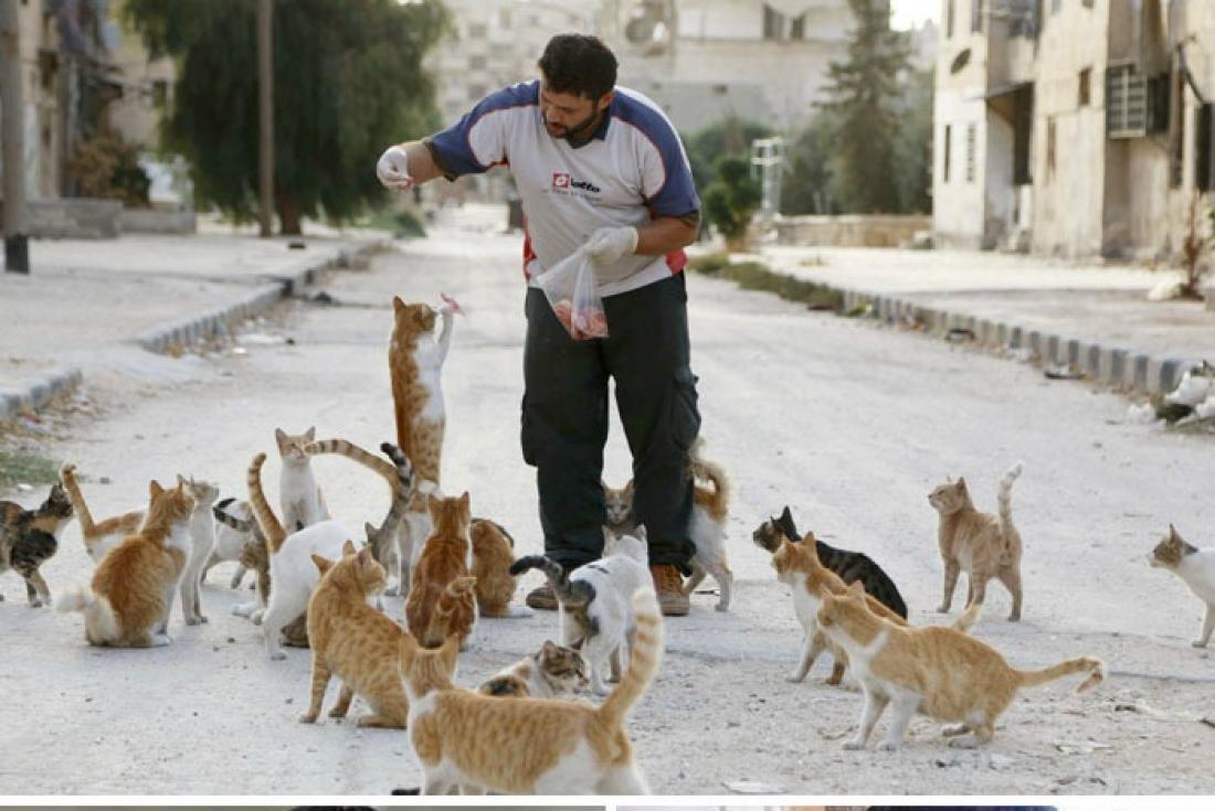 Ταϊζει τις γάτες στο Χαλέπι