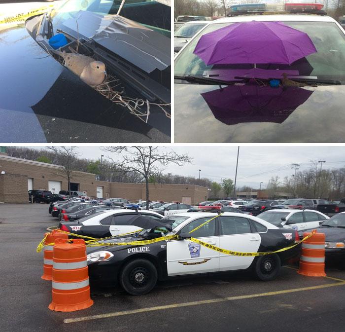 'Εφτιαξε τη φωλιά του σε περιπολικό, οι αστυνομικοί έβαλαν μια ομπρέλα