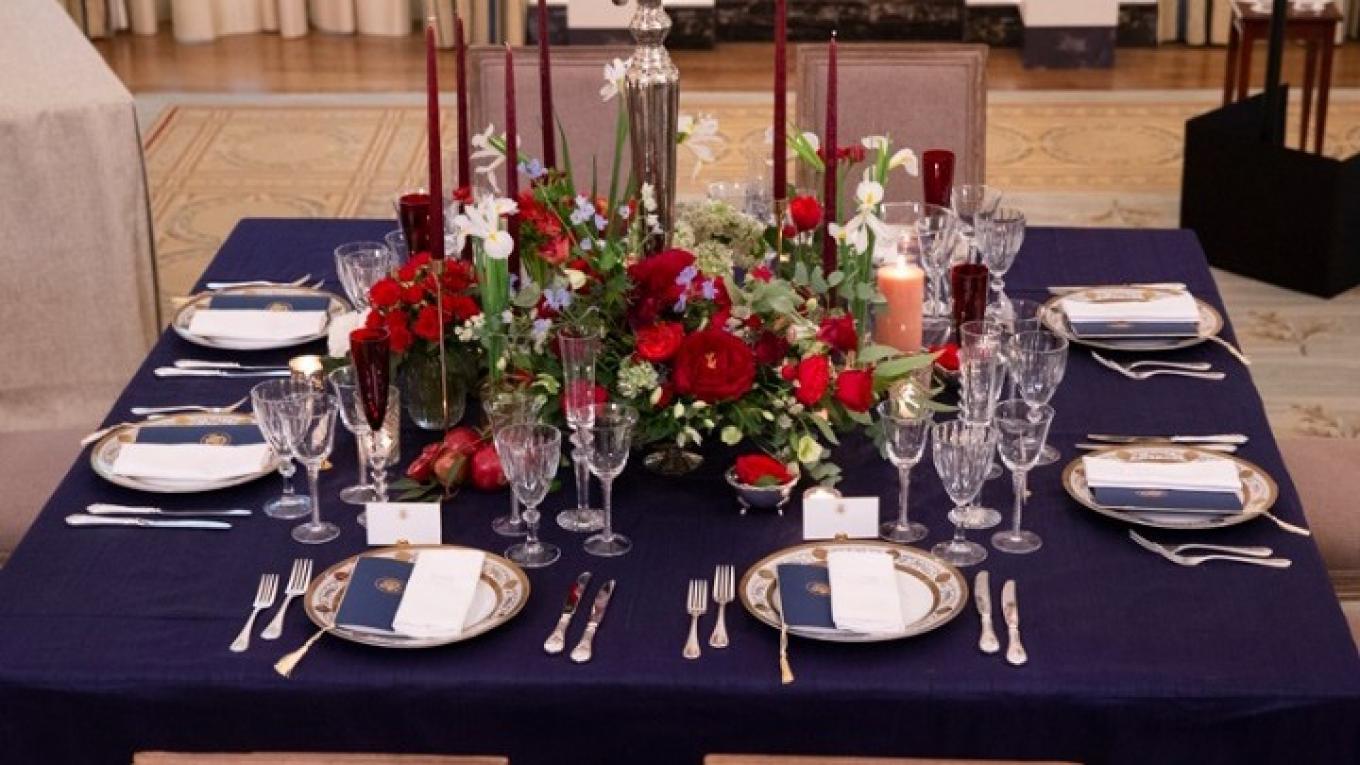 Το μενού του δείπνου, που θα παραθέσει στο γαλλικό προεδρικό ζεύγος, θα περιλαμβάνει αμερικανικές σπεσιαλιτέ, αστακό από το Μέιν ποσέ με βούτυρο, American Osetra χαβιάρι και βοδινό και πατάτες, ενώ θα ακολουθήσουν τυριά από το Όρεγκον, την Καλιφόρνια και το Ουισκόνσιν.