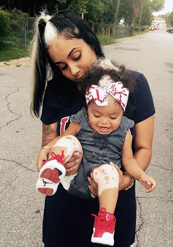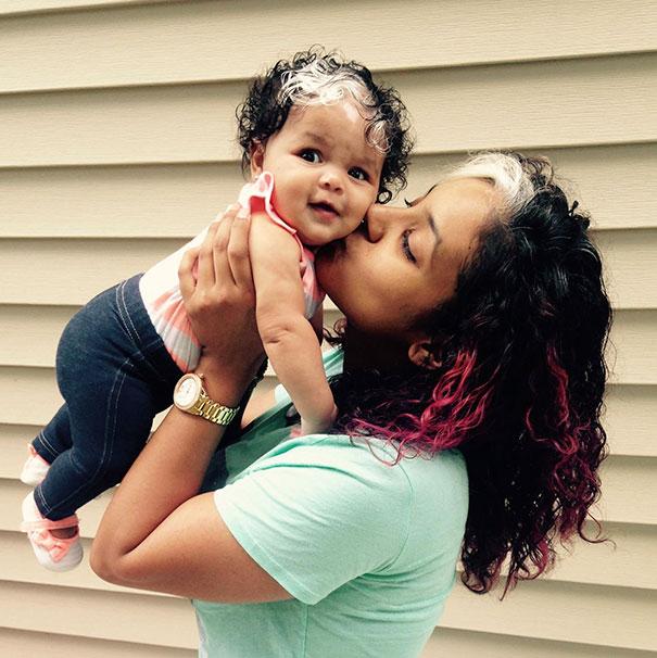 "H μητέρα μου ήταν υιοθέτημενη, για αυτό δεν έχουμε ιδέα πως ακριβώς το κληρονόμησε αυτό το χαρακτηριστικό. Εγώ ήθελα η κόρη μου να πάρει από μένα και να έχει τις άσπρες τριχούλες! Στην αρχή δεν μπορούσαμε να καταλάβουμε αλλά όταν πέρασαν οι μέρες έβλεπα λίγες άσπρες τρίχες και ήμουν τόσο χαρούμενη!", αναφέρει η Brianna.