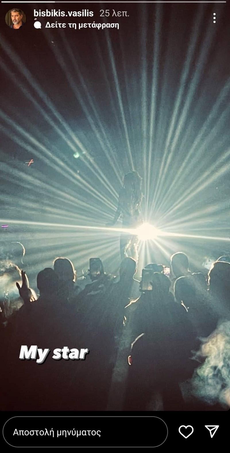 «My star (το αστέρι μου)» έγραψε χαρακτηριστικά ο Βασίλης Μπισμπίκης πάνω στη φωτογραφία, δείχνοντας έτσι για ακόμη μια φορά την αδυναμία που έχει στη Δέσποινα Βανδή.
