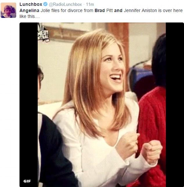Οι χρήστες των μέσων κοινωνικής δικτύωσης δεν άργησαν αμέσως μετά την ανακοίνωση του διαζυγίου Μπραντ-Τζολί να γεμίσουν με φωτογραφίες της...Τζένιφερ Ανιστον να χοροπηδάει από τη χαρά της και να είναι ενθουσιασμένη που πήρε επιτέλους εκδίκηση.
