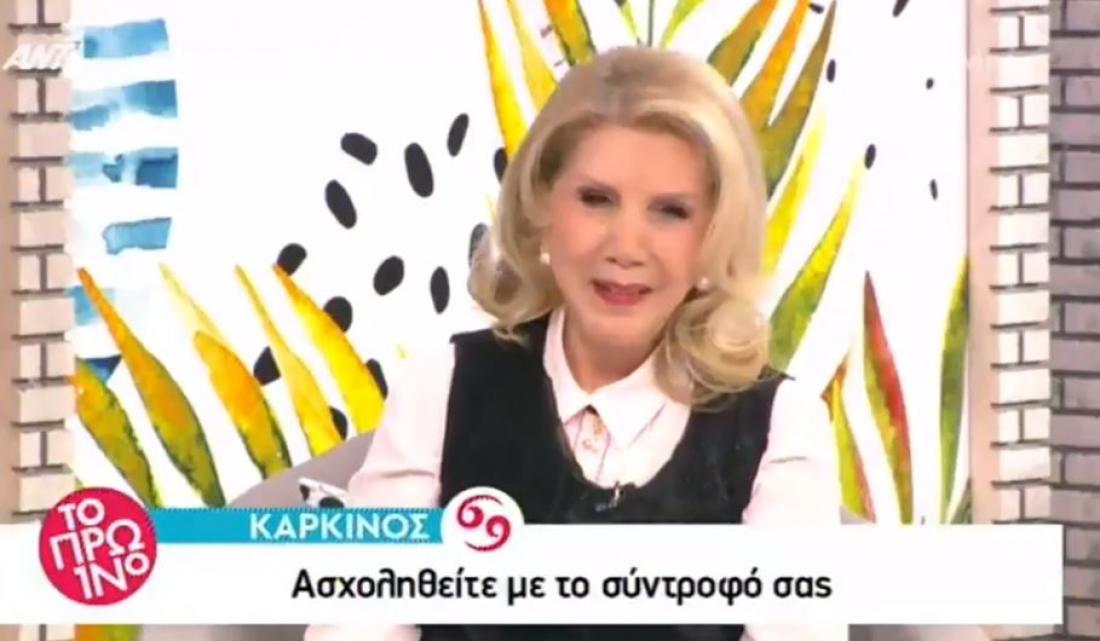 Στο σημερινό πρωινό με την ένα περιστατικό που συνέβη πίσω από τις κάμερες έκανε την να ξεσπάσει σε νευρικά γέλια, χωρίς να μπορεί να σταματήσει. «Κάτι γίνεται παιδιά σήμερα. Μου κάνουν σαμποτάζ το βλέπετε ε; » είπε αρχικά η αστρολόγος βλέποντας τα όσα συμβαίνουν απέναντί της χωρίς να αποκαλύψει το περιστατικό ενώ εν συνεχεία συμπλήρωσε: «Πρέπει να τα δείχνετε αυτά για να ξέρετε και εσείς γιατί γελάμε ».