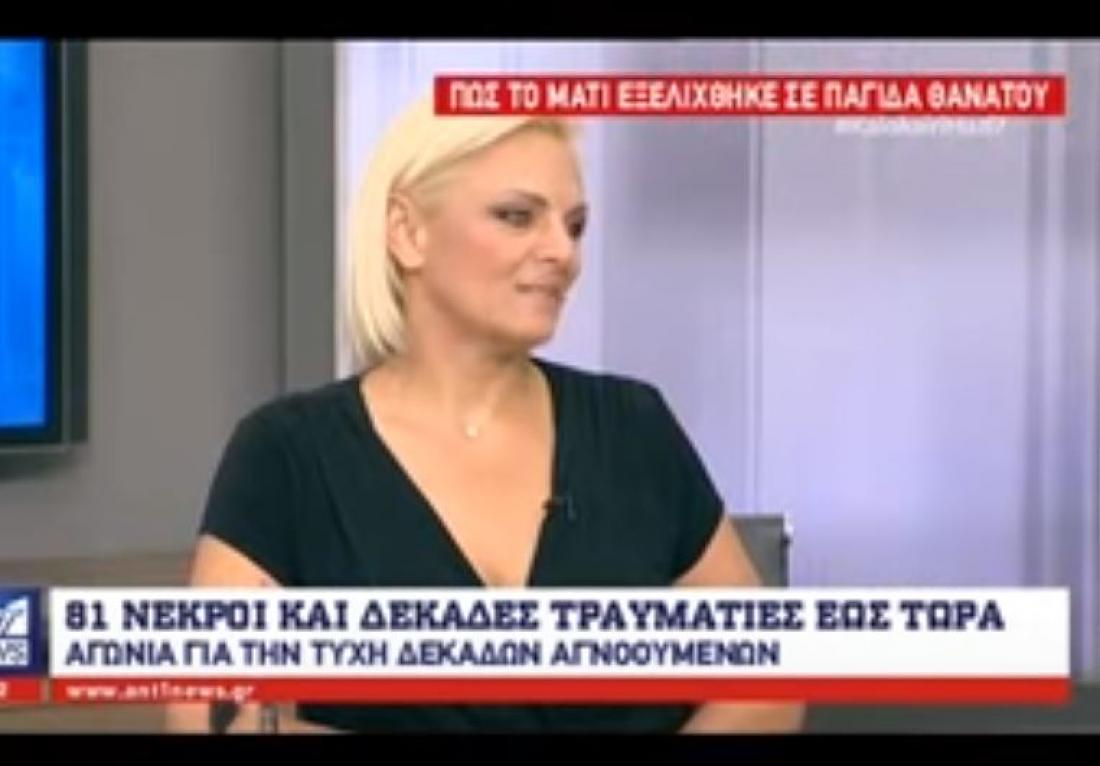 Η παρουσιάστρια το πρωί της Πέμπτης μίλησε στην πρωινή ενημερωτική εκπομπή του ΑΝΤ1, όπου μάλιστα προβλήθηκε και μια φωτογραφία από το καμένο σπίτι της .