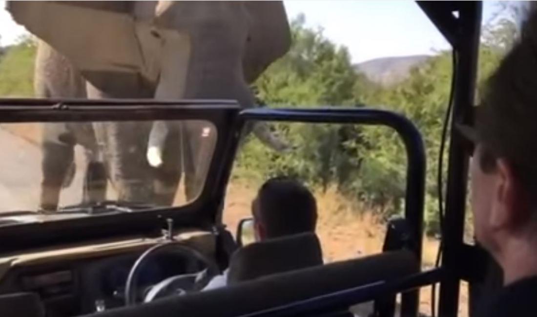 «Θα μας επιτεθεί» ακούγεται μια φωνή από το εσωτερικό του οχήματος. Το τεράστιο ζώο στο τέλος οπισθοχωρεί και κατόπιν δείχνει να παρακάμπτει το τζιπ. «Ήταν απλά περίεργος» εξηγεί ο ξεναγός εμφανώς ανακουφισμένος. «Θα λέγαμε ότι όλα είναι καλά τώρα, θα μας αποφύγει». Ωστόσο το αίσθημα ανακούφισης θα διαρκέσει λίγο και θα το διαδεχθεί ο φόβος. Ο ελέφαντας προσεγγίζει με επικίνδυνες διαθέσεις το όχημα από πίσω, προτού επιτεθεί εκ νέου.