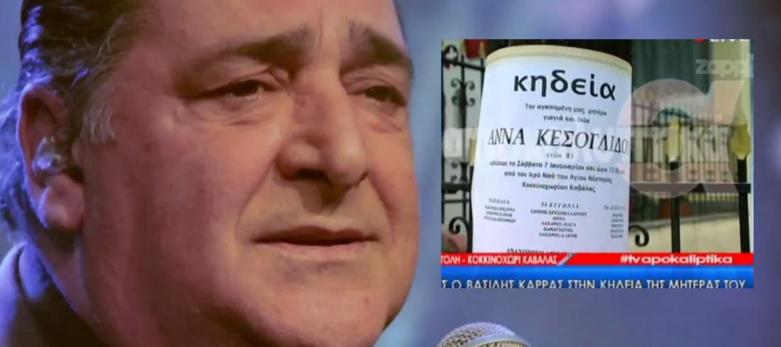 Η μητέρα του Βασίλη Καρρά, Άννα Κεσογλίδου άφησε την τελευταία της πνοή στα 84 της χρόνια. Η κηδεία της πραγματοποιήθηκε το μεσημέρι του Σαββάτου στο Κοκκινοχώρι στην Καβάλα και ο γνωστός τραγουδιστής ήταν συντετριμμένος.