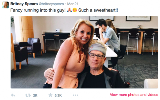 Την επόμενη μέρα όμως ο μάνατζερ του ηθοποιού του τηλεφώνησε και του είπε ότι μία φωτογραφία του, που κυκλοφόρησε στο Twitter, συγκέντρωσε 5.000 likes και μόνο τότε έμαθε ότι στην φωτογραφία αυτή ήταν μαζί με την διάσημη τραγουδίστρια Μπρίτνεϊ Σπίαρς