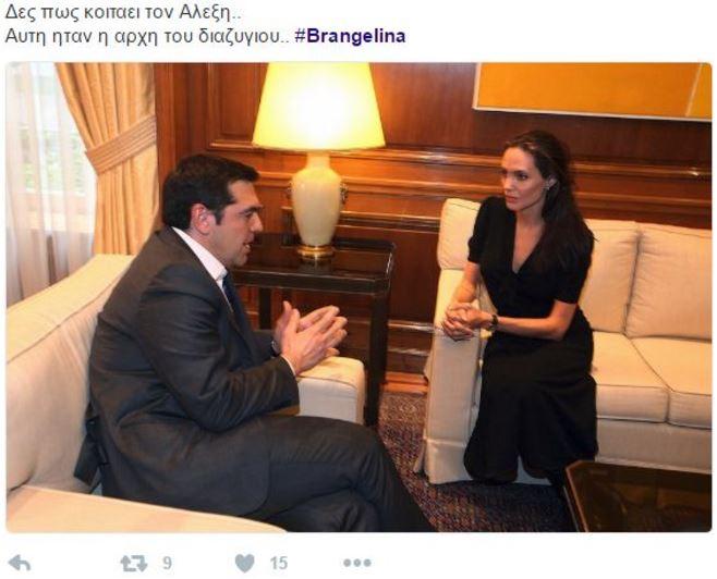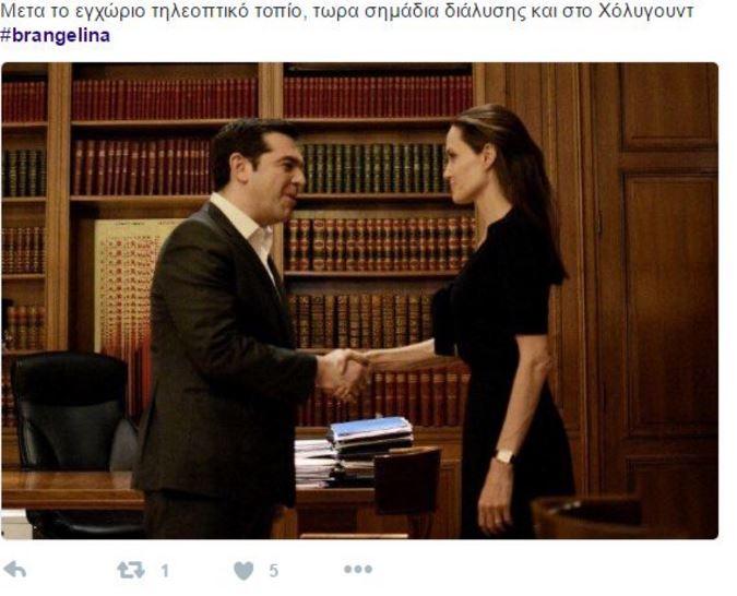 "Εδώ έκανε το όχι, ναι! Την Ατζελινα με τον Μπράντ δεν θα χωριζε? #@atsipras"