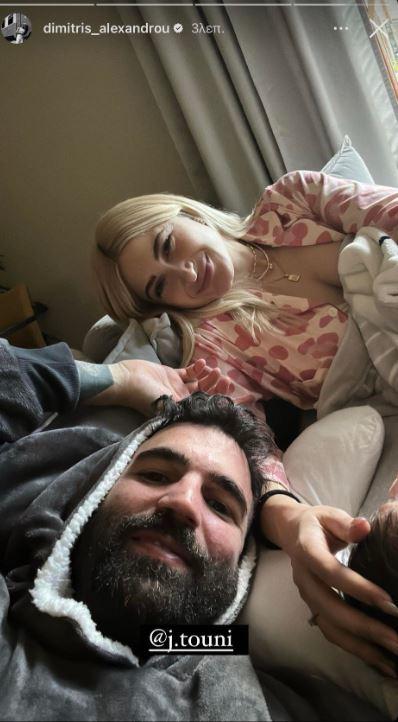 Ο Δημήτρης Αλεξάνδρου σήμερα το απόγευμα δημοσίευσε ένα Instagram story με μία άκρως τρυφερή φωτογραφία με την οικογένειά του. Όπως θα δείτε στο παρακάτω στιγμιότυπο ο Δημήτρης Αλεξάνδρου ποζάρει μαζί με την Ιωάννα Τούνη και τον μπέμπη τους από τον καναπέ του σπιτιού τους και οι τρεις τους λάμπουν από ευτυχία.