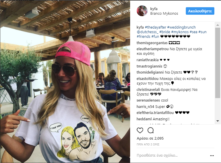 Η μέρα της ξεκίνησε με ένα «δυναμωτικό» beachside brunch και η έκανε την εμφάνιση της ως κυρία Θεοδωρίδη με το χαρακτηριστικό μπλουζάκι του γάμου και την βέρα της!