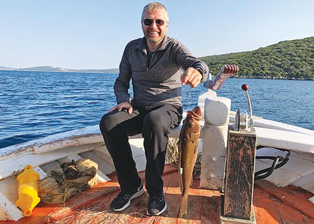 Ο «Mr Σκορπιός» απολαμβάνει το ψάρεμα, που τόσο αγαπάει, και μάλιστα φωτογραφήθηκε ξημερώματα Πέμπτης στη Λευκάδα, πάνω σε παραδοσιακό ψαράδικο, κρατώντας ένα μεγάλο ψάρι.