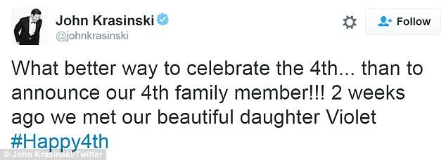 Η Εμιλι Μπλαντ και ο Τζον Κραζίνσκι απέκτησαν τη δεύτερη κόρη που θα πάρει το όνομα Βάιολετ. Ο διάσημος ηθοποιός ανακοίνωσε την γέννησή της με ένα γλυκό tweetπου γράφει: "Δεν υπάρχει καλύτερος τρόπος να γιορτάζουμε την 4η Ιουλίου...από το να ανακοινώσουμε το 4ο μέλος της οικογένειάς μας!!!Πριν από δύο εβδομάδες γνωρίσαμε την όμορφη κόρη μας Βάιολετ".
