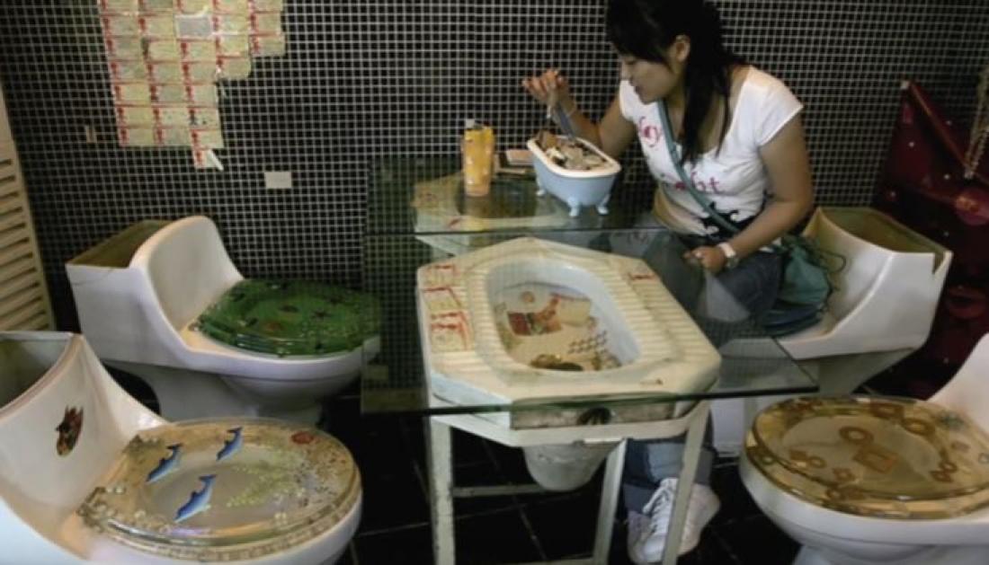 1. Tουαλέτα Restaurant στην Ταιβάν. Στο εστιατόριο υπάρχουν καρέκλες, σερβίτσια σε σχήμα μπανιέρας και τουαλέτας αλλά κατα τ' άλλα τα φαγητά είναι πεντακάθαρα.