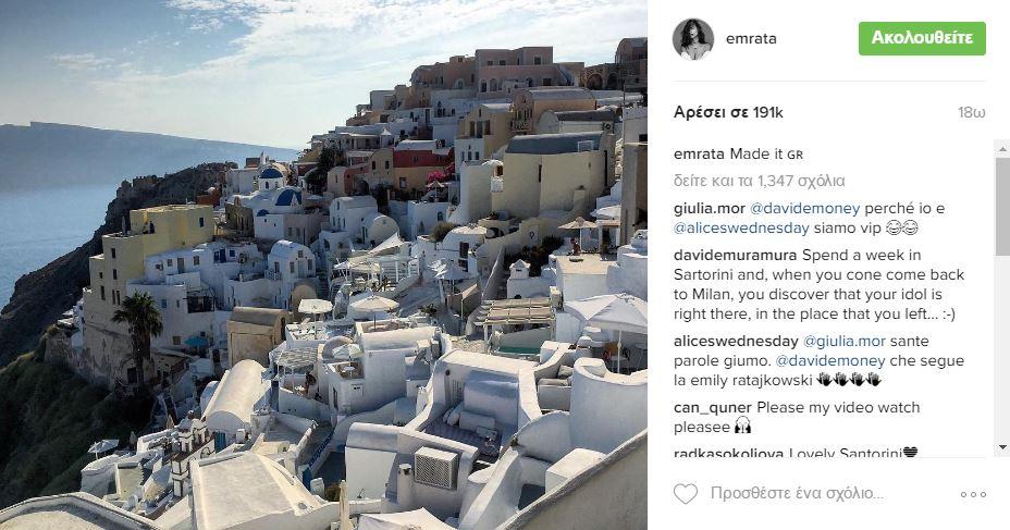 Γεγονός παραμένει πάντως πως ένα από τα πιο σέξι κορίτσια του Χόλιγουντ βρίσκεται αυτή τη στιγμή στο ελληνικό νησί και φροντίζει να το διαφημίσει, έστω και με τέτοια φωτό. Αρκεί να σας αναφέρουμε ότι η Emily έχει 7,5 εκατ. Followers μόνο στο Instagram!