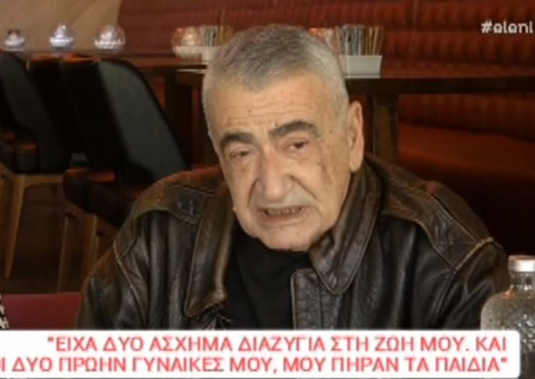 «Στο πρώτο το έσκασε η γυναίκα μου και μου άφησε το παιδί. Εγώ ήμουν σε γυρίσματα και δεν ήξερα τι να κάνω με το παιδί. Η δεύτερη το πήρε κι έφυγε στις 5 το πρωί την ώρα που κοιμόμουν », είπε μεταξύ άλλων ο ηθοποιός.