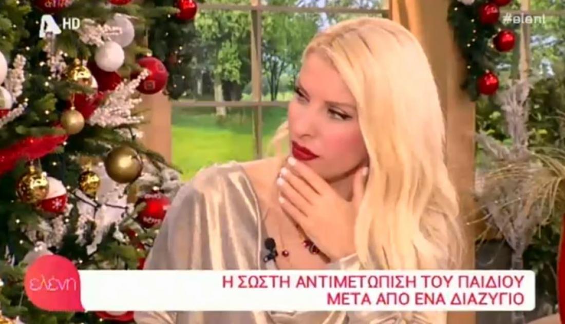 «Ένα ζευγάρι όταν χωρίζει, όταν έχει φτάσει στο χωρίζω, χωρίζω, σημαίνει ότι έχουν προηγηθεί άλλα πράγματα. Δεν ξύπνησε ένα πρωί και είπε δεν είναι καλά η σεξουαλική μας ζωή σήμερα, μήπως να χωρίσουμε; Υπάρχουν θέματα τα οποία τα παλεύουν καιρό, μπορεί και χρόνια. Για το θέμα των ηλικιών εγώ το σκέφτομαι λέω. Αν είναι τα παιδιά στην προεφηβεία και τους έχει πιάσει κιόλας η προεφηβεία και τους βάλεις και αυτό να διαχειριστούν, δεν είναι πολύ πιο δύσκολο; Μπορεί να μαλώνουν για τα παιδιά τα ζευγάρια, αλλά να χωρίζουν γι’ αυτό, όχι. Για δικά τους θέματα χωρίζουν, δεν έχουν καμία σχέση τα παιδιά », είπε η .
