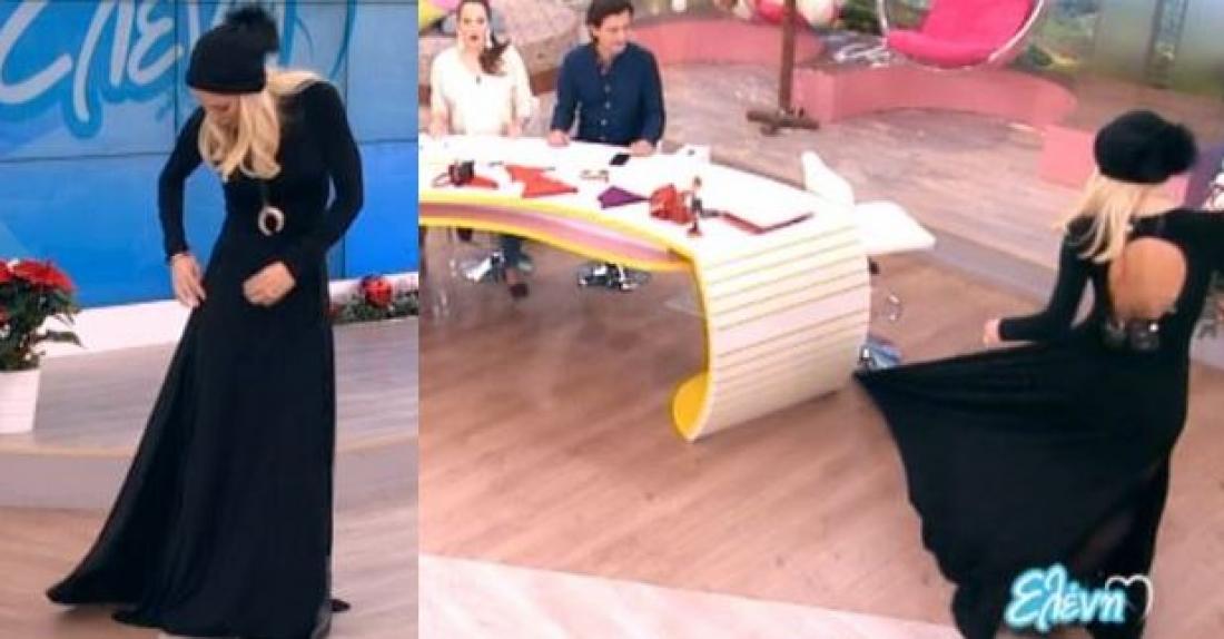 Ένα μακρύ φόρεμα και ένας μαύρος σκούφος αλλά έξω πλάτη δημιουργούσαν μια εντελώς διαφορετική όψη για την παρουσιάστρια.