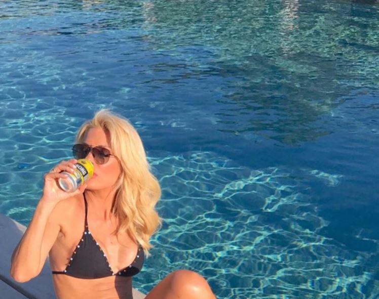 Αυτή την φορά ανέβασε μια φωτογραφία στο instagram στην οποία φαίνεται να κάνει ηλιοθεραπεία φορώντας το μπικίνι της πάνω σε σκάφος, απολαμβάνοντας το αναψυκτικό της.