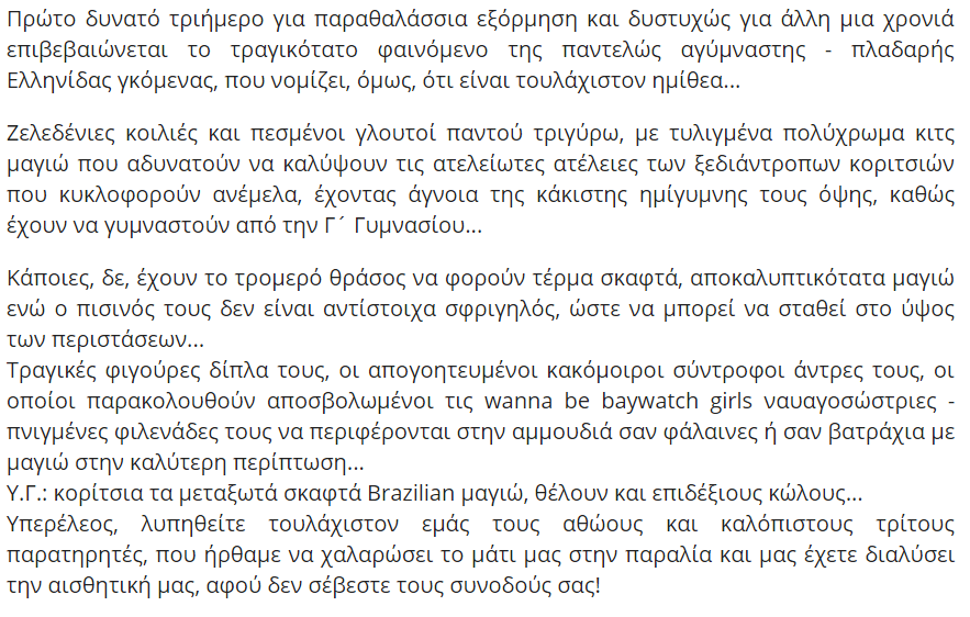 «Δικηγοράκο μου, υπάρχει λύση. Το τόπι σου και σε άλλη παραλία. Είσαι τυχερός που φόρεσα μαγιό. Αγοράζω θονγκ μόνο για πάρτη σου. Και φάλαινα και ντίβα γιατί μπορώ. Καλές βουτιές κορίτσια».