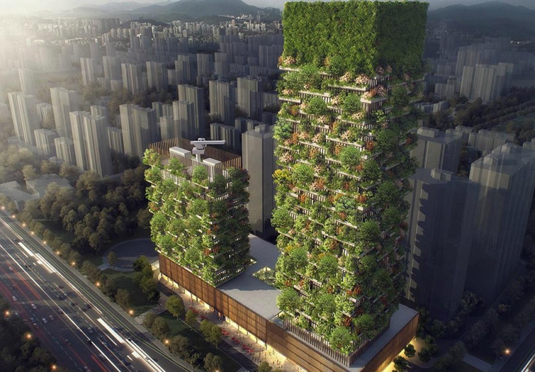 Βρίσκονται στην πόλη Ναντσίνγκ της Κίνας και σχεδιάστηκαν από τον Ιταλό Στέφανο Μποέρι. 'Οταν ολοκληρωθούν το 2018 θα αποτελούν πραγματικά ένα πνεύμονα πρασίνου για την κινεζική πόλη που όπως και όλη η χώρα είναι από τις περισσότερο βεβαρημένες στον τομέα της ατμοσφαιρικής ρύπανσης.