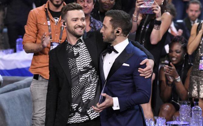 Την εμφανισή τους έκαναν και διάσημοι αστέρες του Χόλλυγουντ. Λίγο πριν την έναρξη της ψηφοφορίας, εμφανίστηκαν οι Βρετανοί ηθοποιοί Ίαν ΜακΚελεν και Ντέρεκ Τζάκομπι υποδυόμενοι τους ρόλους τους από την βρετανική κωμική σειρά Vicious, σατηρίζοντας τον διαγωνισμό. "Η Αμερική ήρθε στην Γιουροβίζιον" είπαν όταν ο ποπ τραγουδιστής Τζάστιν Τίμπερλεϊκ έκανε την είσοδό του στο greenroom.