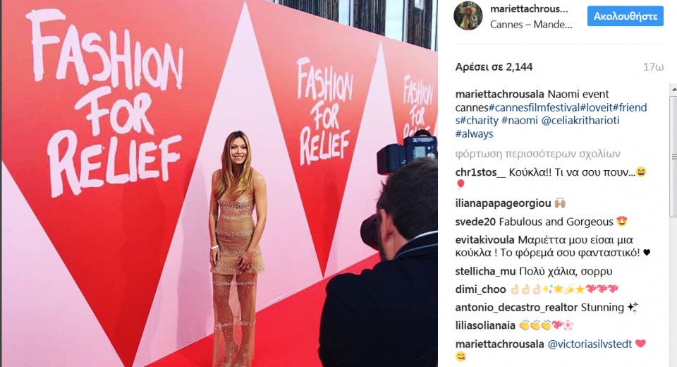 Η Ελληνίδα καλλονή βρέθηκε στις Κάννες για το φιλανθρωπικό γκαλά της Ναόμι Κάμπελ «Fashion For Relief» φορώντας μια εντυπωσιακή δημιουργία της