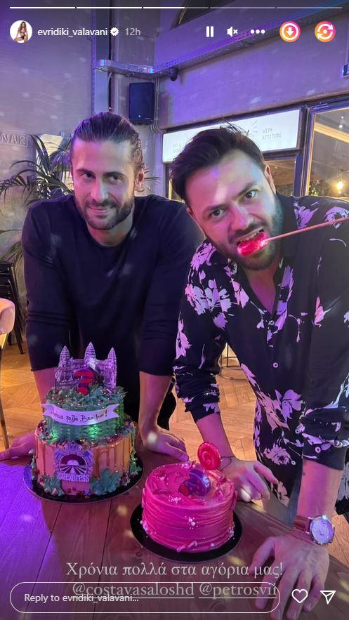 Συγκεκριμένα, ο Κωνσταντίνος Βασάλος χθες είχε τα γενέθλιά του και έκανε ένα κοινό πάρτι μαζί με τον τραγουδιστή των Alcatrash, Πέτρο Πυλαρινό.