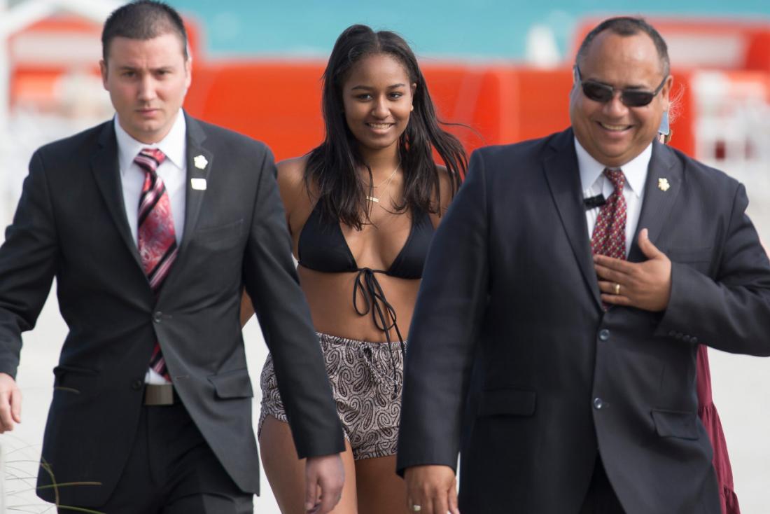 Μπορεί να έδειχνε και να ήταν χαλαρή με τις φίλες της ωστόσο σε κοντινή απόσταση βρίσκονταν και οι άντρες της φρουράς της από την Μυστική Υπηρεσία των ΗΠΑ, που η παρουσία τους μόνο μυστική δεν ήταν, καθώς φορούσαν μαύρα κοστούμια και διατηρώντας το αυστηρό τους ύφος, παρατηρώντας τον κόσμο που βρίσκονταν γύρω από την κόρη του απερχόμενου Προέδρου των ΗΠΑ, Μπαράκ Ομπάμα.