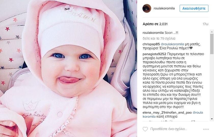 Μετά το ξαφνικό «διαζύγιο» της Ρούλας Κορομηλά με τον τηλεοπτικό σταθμό του «Epsilon», η παρουσιάστρια έκανε μία αινιγματική ανάρτηση. Στην προσωπική της σελίδα στο Instagram ανήρτησε τη φωτογραφία ενός μωρού, γράφοντας «Σύντομα».